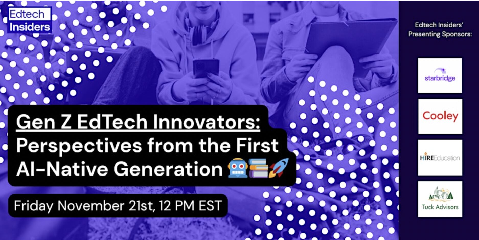 Join me and a couple of other Zillennial & Gen Z founders as we unpack what itβs like being the first generations to experience education before and after AI, and also build with these new tools! Hosted by Edtech Insiders